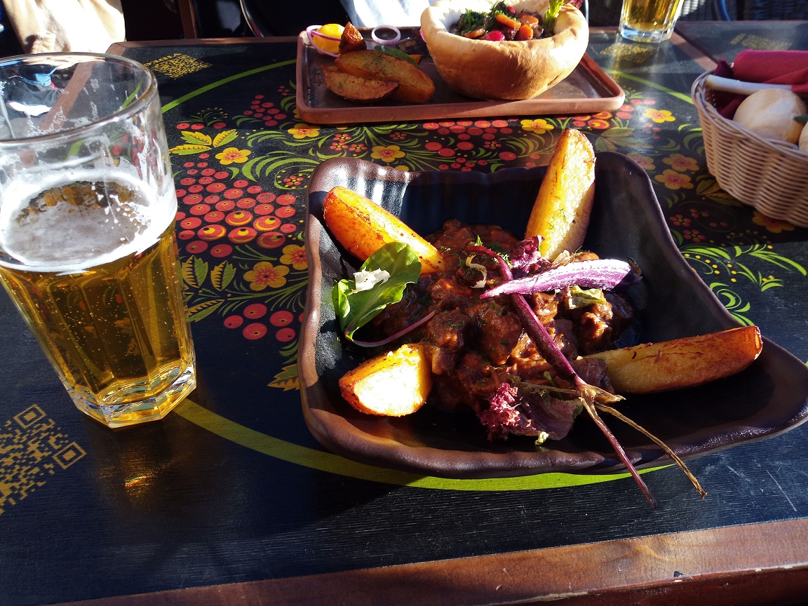 ということで、この日は、お天気も良くなったので、タウンホールの前のロシア料理屋さんで、お食事して終了。