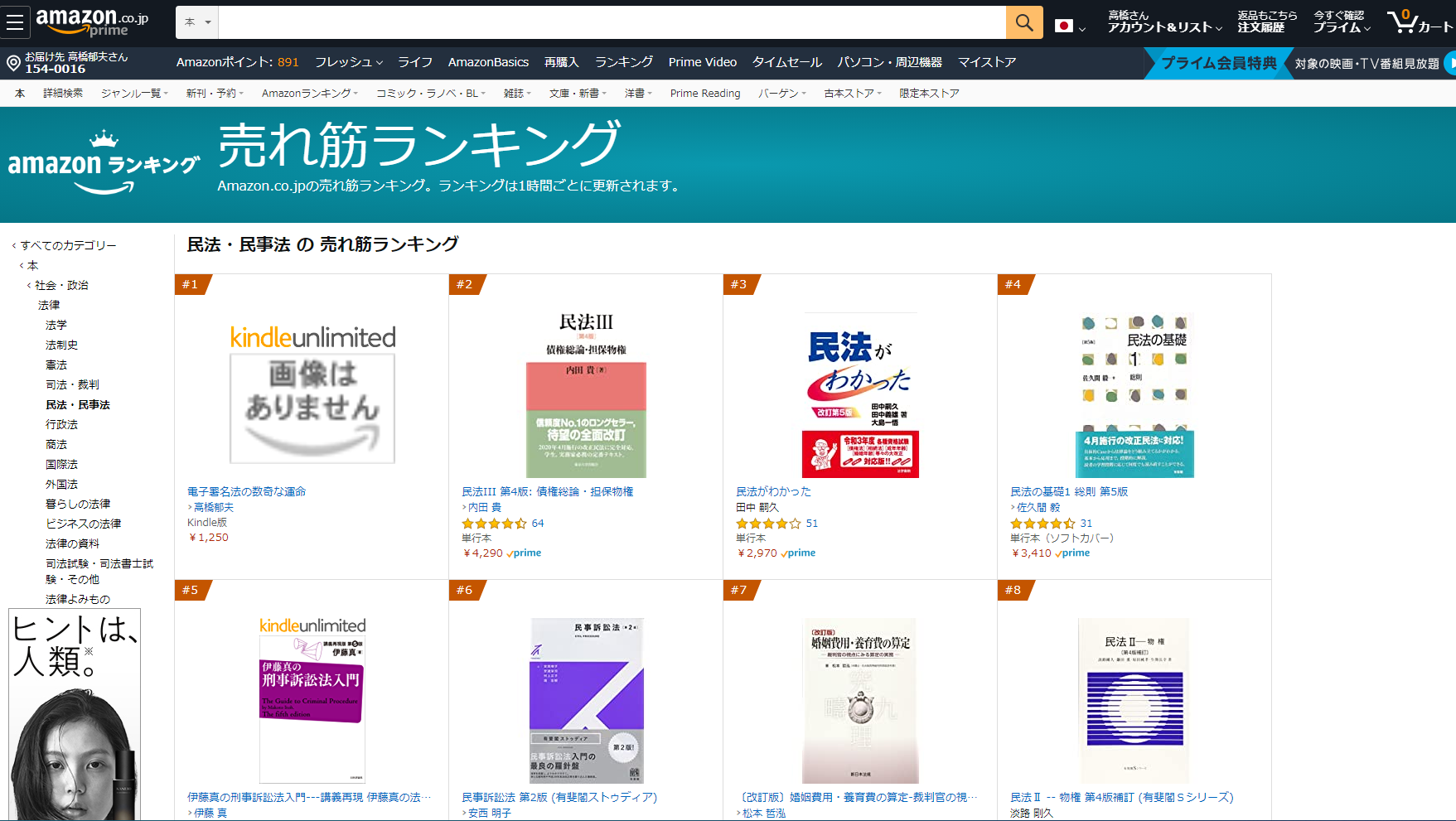 「電子署名法の数奇な運命」(キンドル出版)ですが、現在(11月10日 午後4時8分)アマゾンの民事法のランキング1位にランクされています。ご支援ありがとうございます。