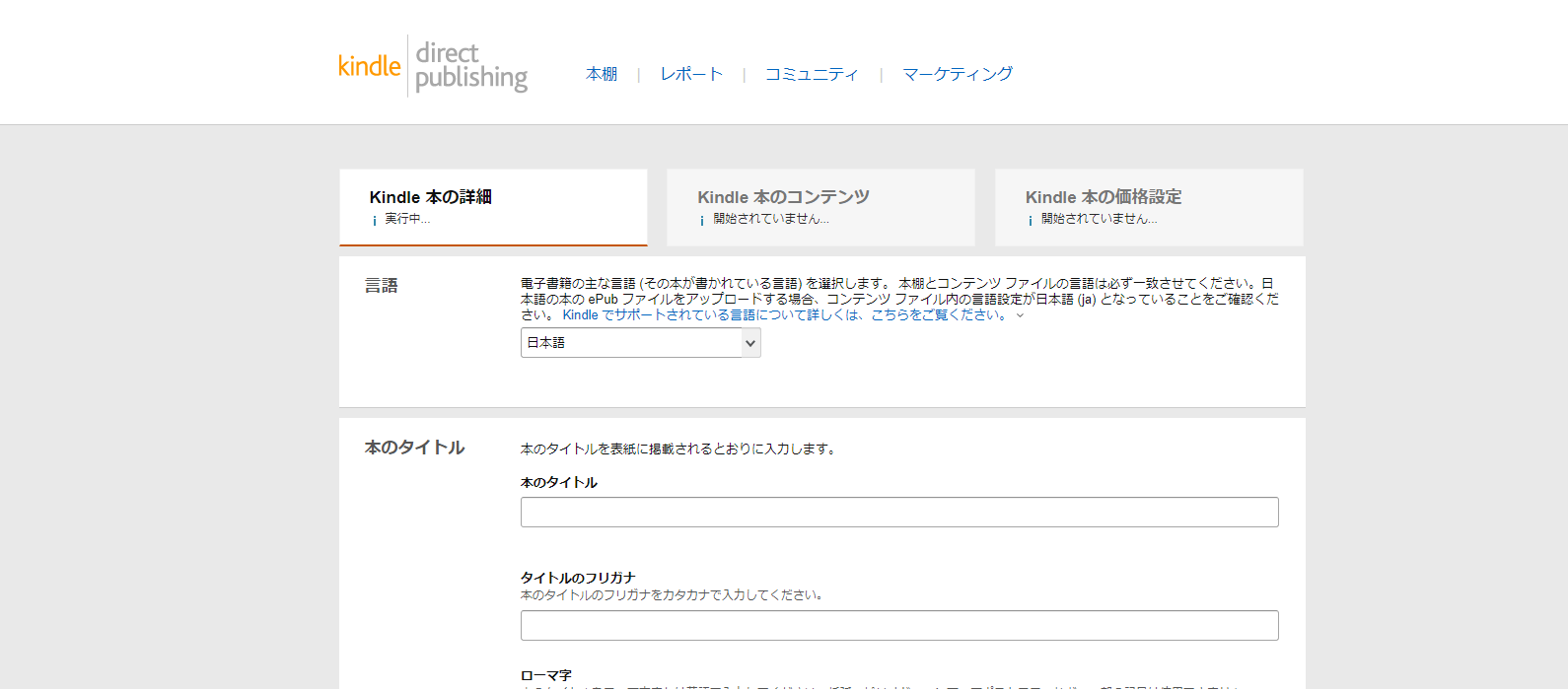 「ファイルの言語が、本の設定時に選択された言語と一致しません。本の設定時に選択された言語が正しい場合は、ファイルの言語を変更して、再度アップロードしてください。」とでて、暗礁に乗り上げました。