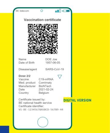 COVID-19パンデミックに関連して発行された、保有者の予防接種、検査、回復状況に関する情報を含む、相互運用可能な証明書。