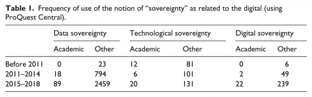 そこでは、デジタルに関連して「主権」という用語が使われているのを調べています。その分析の表はこちらです。