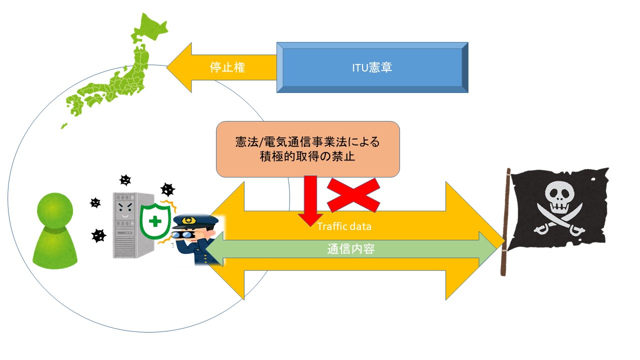 サイバーセキュリティを侵害する通信であるとか、そのような疑いのある通信であっても、それを国ないしその機関が、積極的に取得/利用することは禁止される