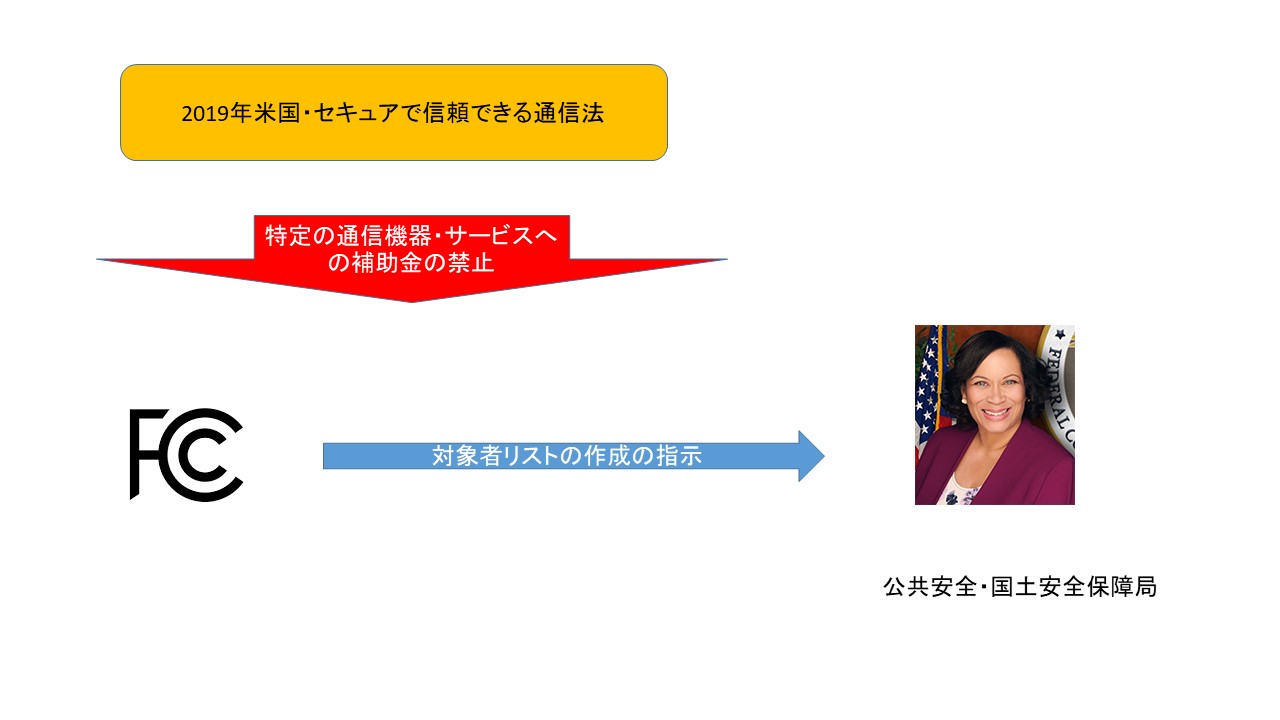 根拠となるのは、2019年米国・セキュアで信頼できる通信法(Secure and Trusted Communications Networks Act of 2019(Pub.L.No.116-124))です。