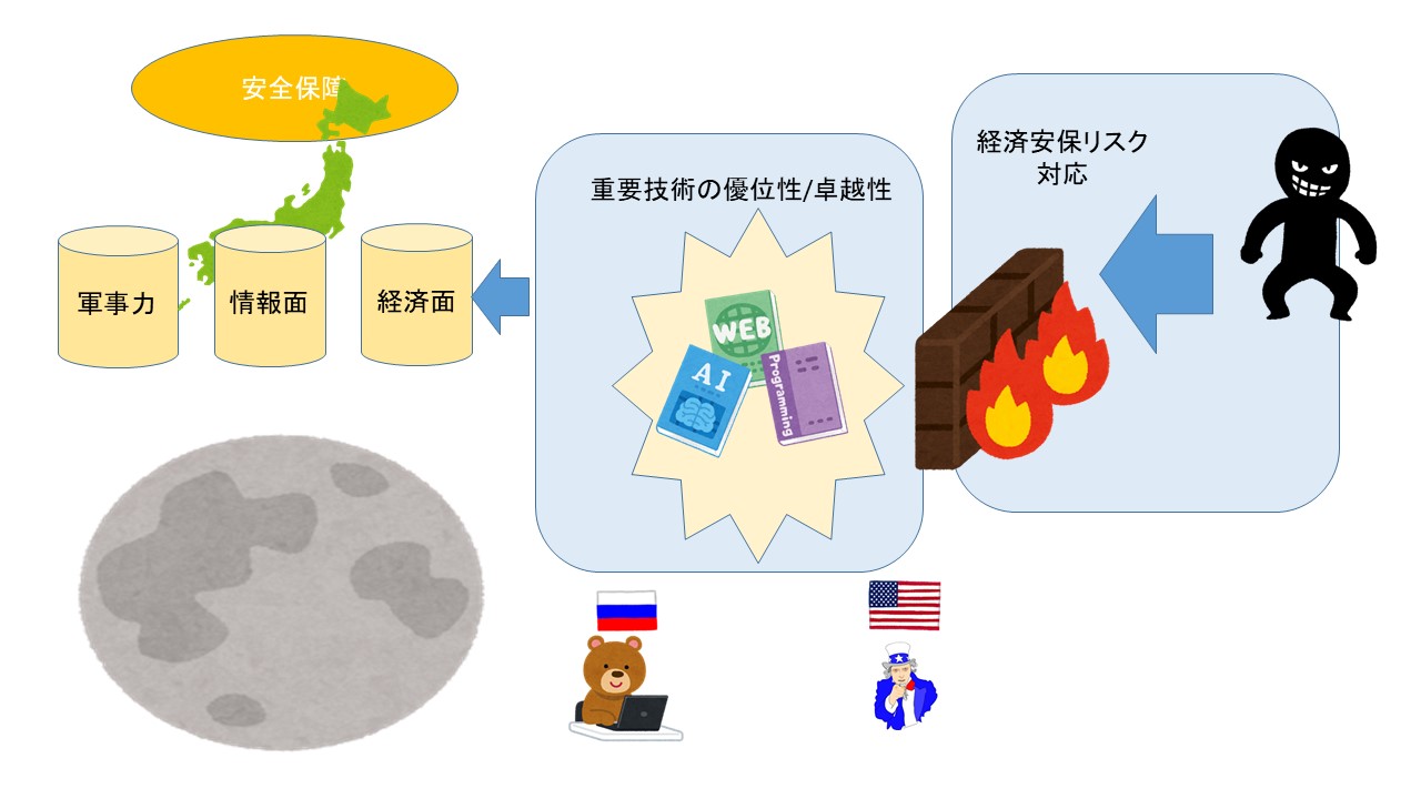 - 経済安全保障の重要性は、民間で軍事に影響を与える技術の発展が著しいこと、中国が「軍民融合」をすすめていること、宇宙・サイバー・電磁波のドメインが技術の優劣で勝敗が決すること、