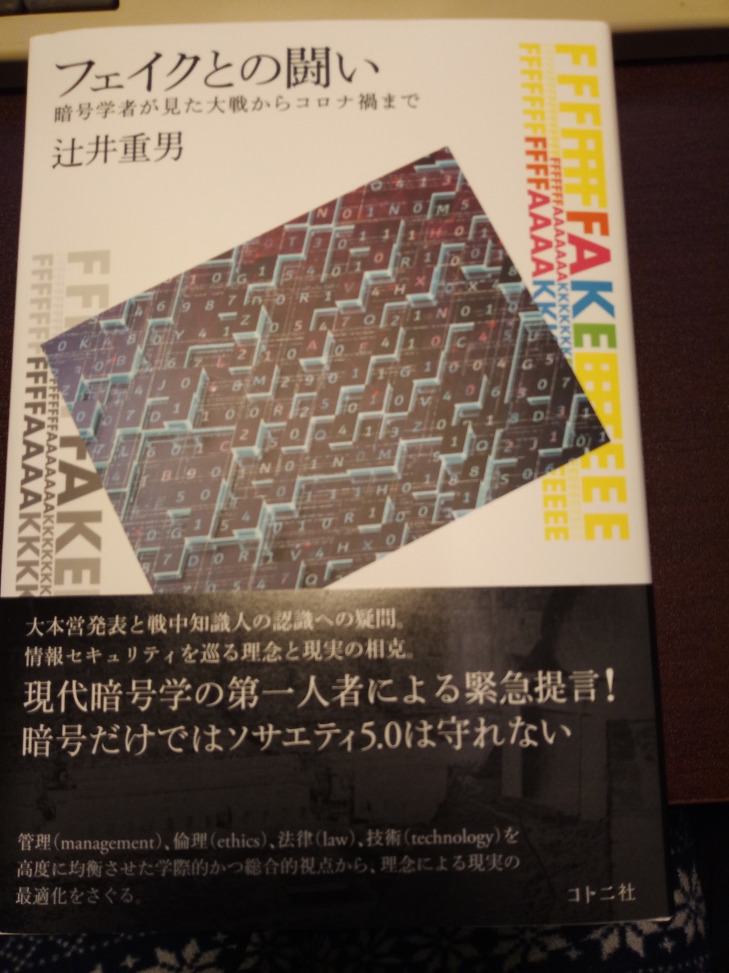 辻井先生より「フェイクとの闘い-暗号学者がみた大戦からコロナ禍まで」を戴きました。写真はこちら。