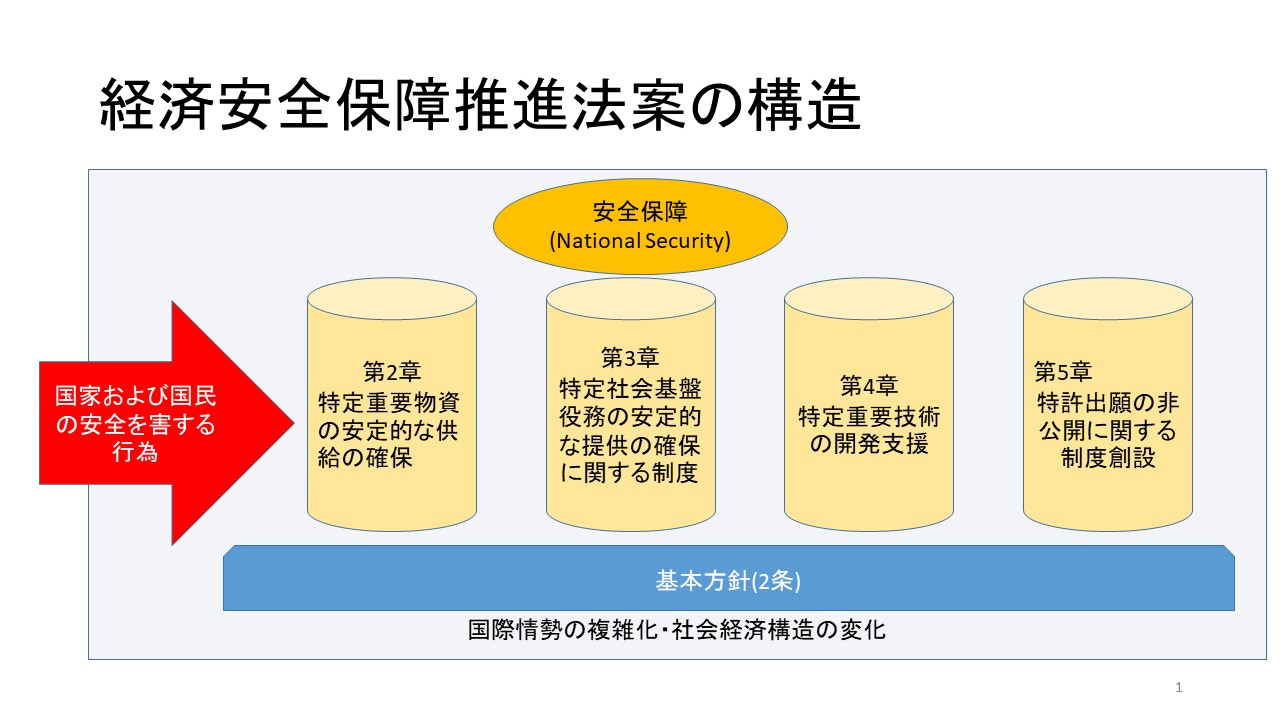 具体的な検討として、条文をみていくことにします。もっとも、経済安保というのは、アンブレラ的な概念になりますので、この法案で議論されているのは、ほんの一部ということがいえるかと思います。さらに、ロシアのウクライナ侵略によって、また、経済安保の様相が変化しているのではないかということもいえるかもしれません。その点については、また、日を改めて議論したいと思います。