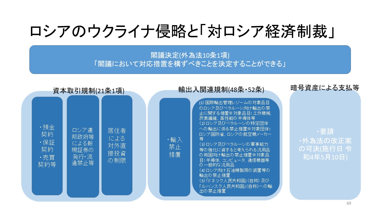 ロシアのウクライナ侵略に対しての日本政府の対応を法的な見地からまとめたいと思います。