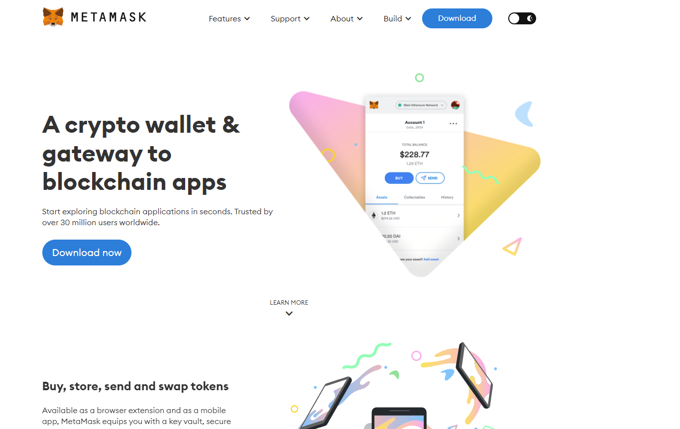このウォレットアプリのなかで、ポピュラーなのが、MetaMaskになります。この説明のページは「「MetaMask」と接続するWebでページを作る」です。