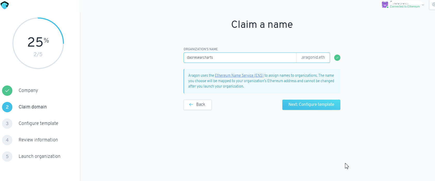 2.2 Aragonで設立してみる