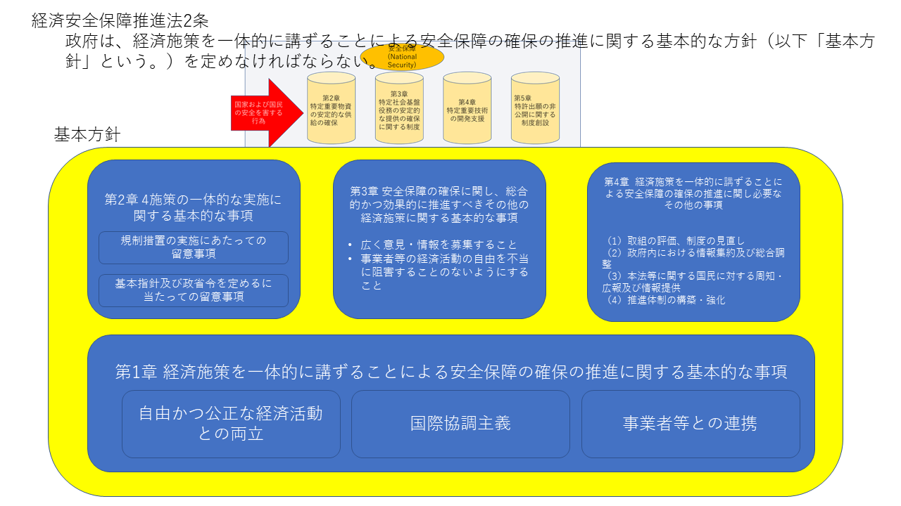 本基本方針は、本法で創設された 4 つの施策を含む安全保障の確保に関する経済施策を、本法に基づき総合的かつ効果的に推進するために、これを定めるものである。