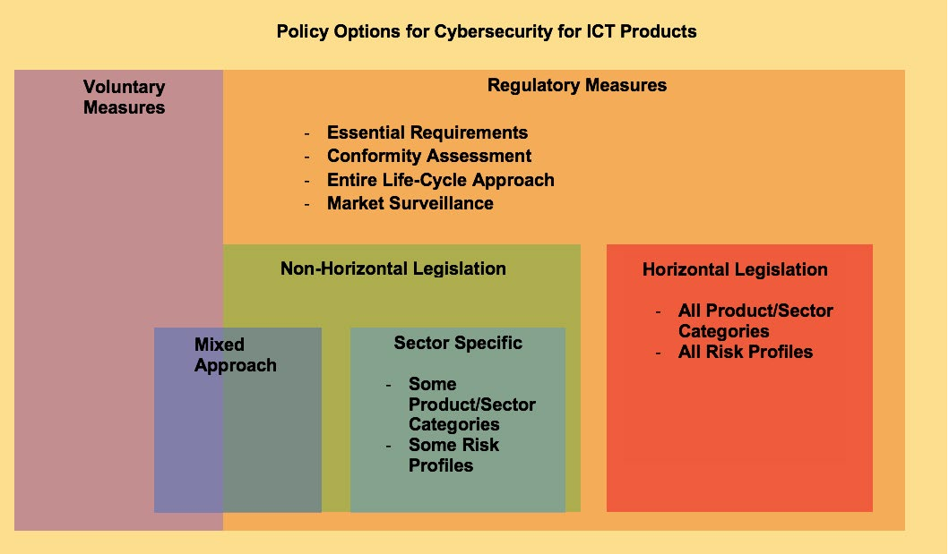 - EU)EUサイバーレジリエンス法(2022年9月草案発表、2025年後半施行予定)-(機器またはネットワークへの直接的又は間接的な論理的又は物理的データ接続を含むデジタル要素を有する製品)