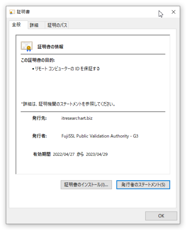 これは、実際に当社のデジタル証明書を見てみましょう。