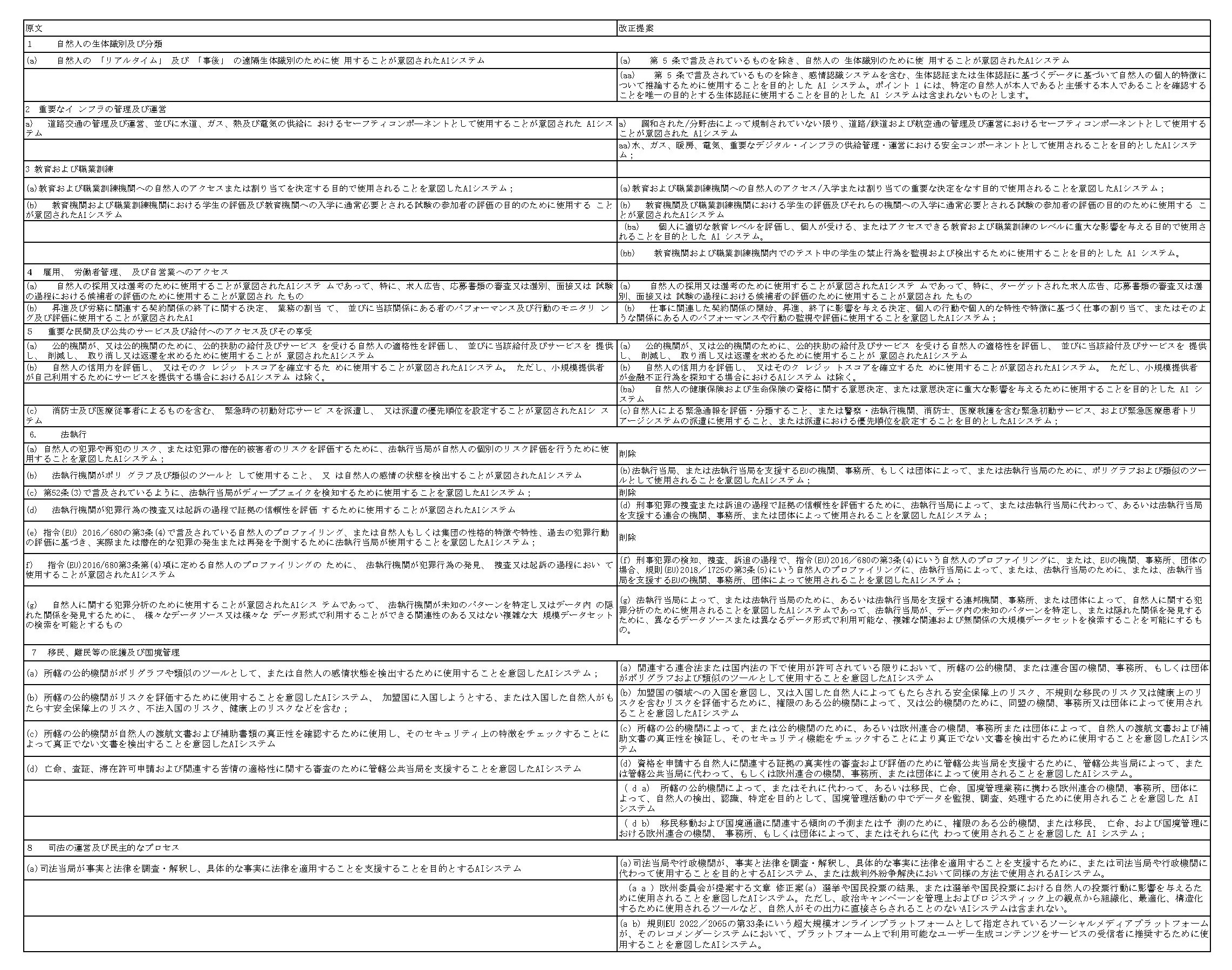 第6条第(2)項に規定するハイリスクAIシステムとは、次のいずれかの分野に掲げるAIシステムをいう。