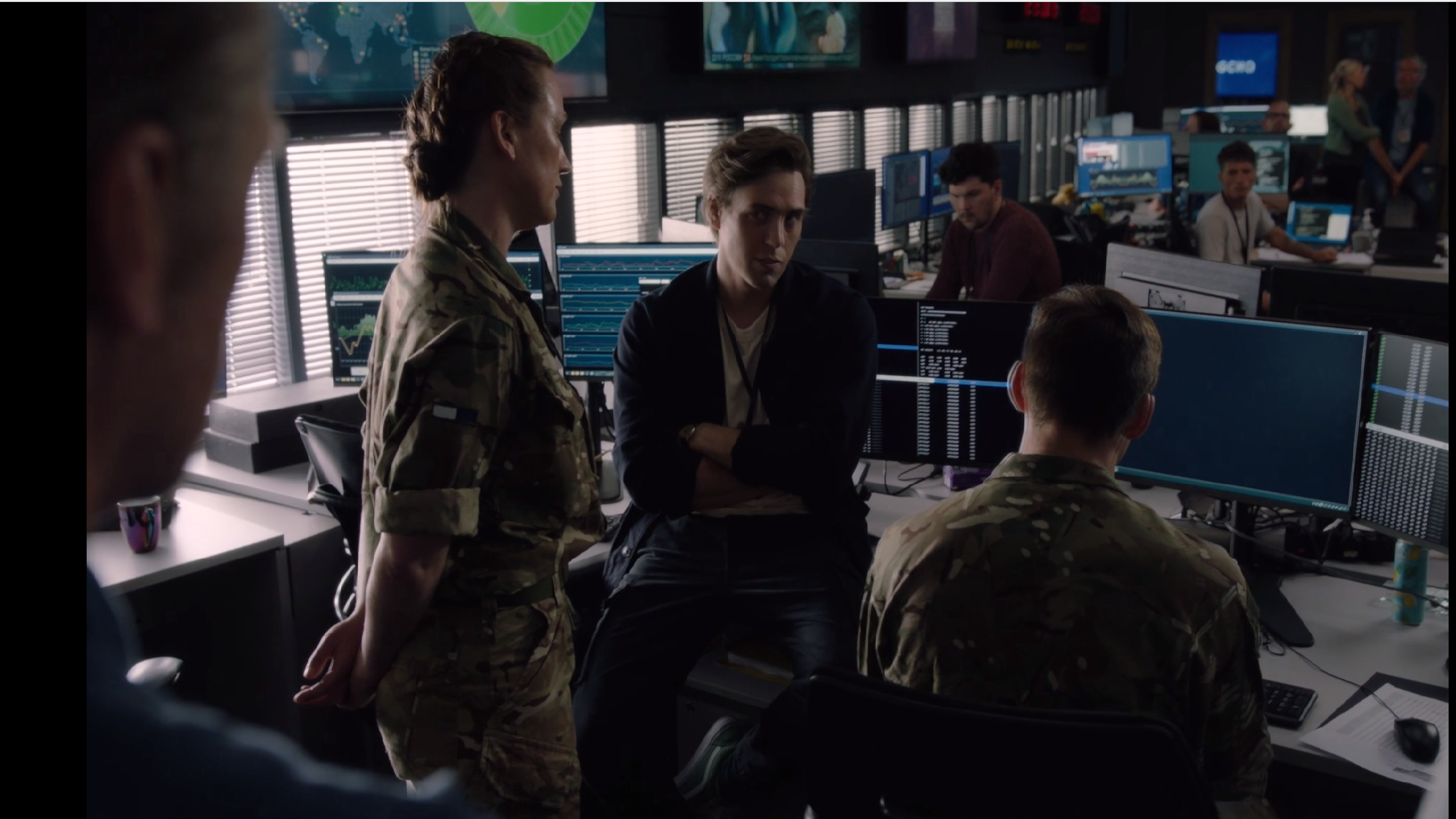 このディスカッションのあと、「軍が指揮をとる」ということになります。このArmyは、NCFということになります。NCFについては、こちらのブログ(ハックのライセンス-英国サイバーフォース「実践-責任あるサイバーパワー」の公表)。それで、上のシーンにつながります。ユニフォームが、GCHQ にやってきて、実際のオペレーションをします。セリフとしては