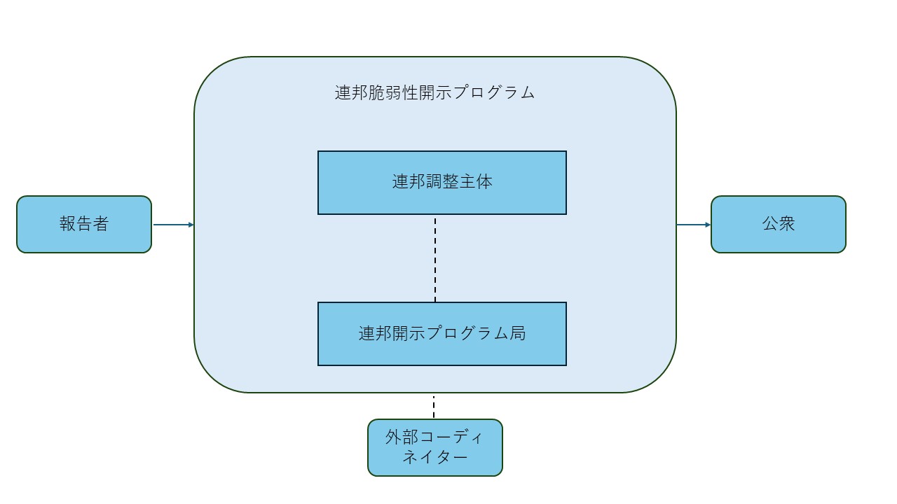 この開示調整プロセスにかかわる組織等の関係を図にすると、以下のようになります。