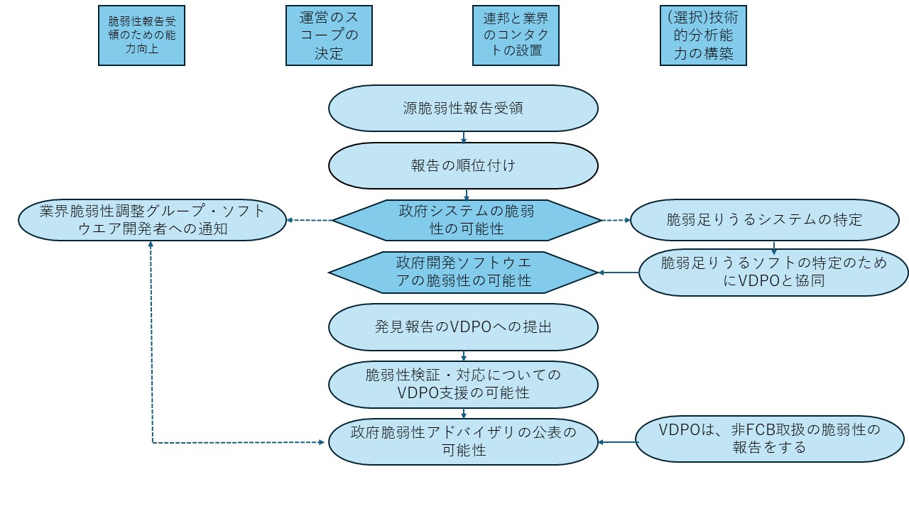 VDPOは、情報技術(IT)システムに責任を持ち、報告された脆弱性を特定し、解決し、勧告を発行するために他のアクターと調整する運用単位を表す。