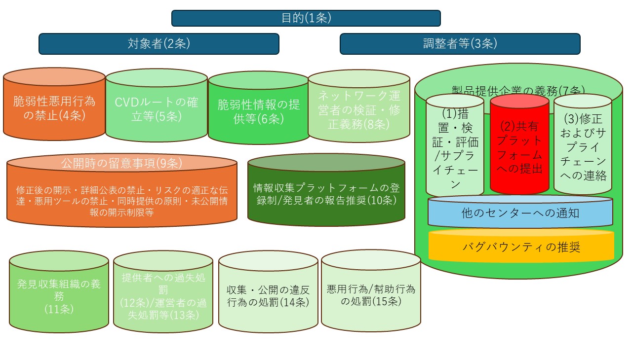 - 製品提供者は脆弱性について、共有プラットフォームへの提供が義務づけられてること
