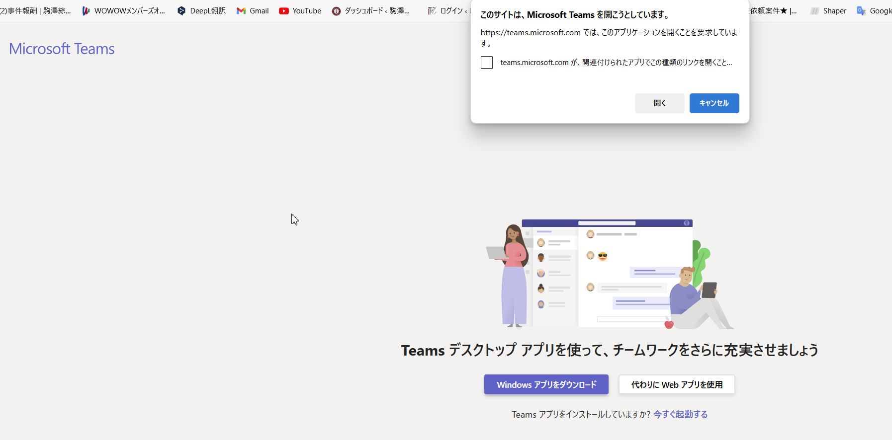 となって、Teamsアプリを開きますか、となります。