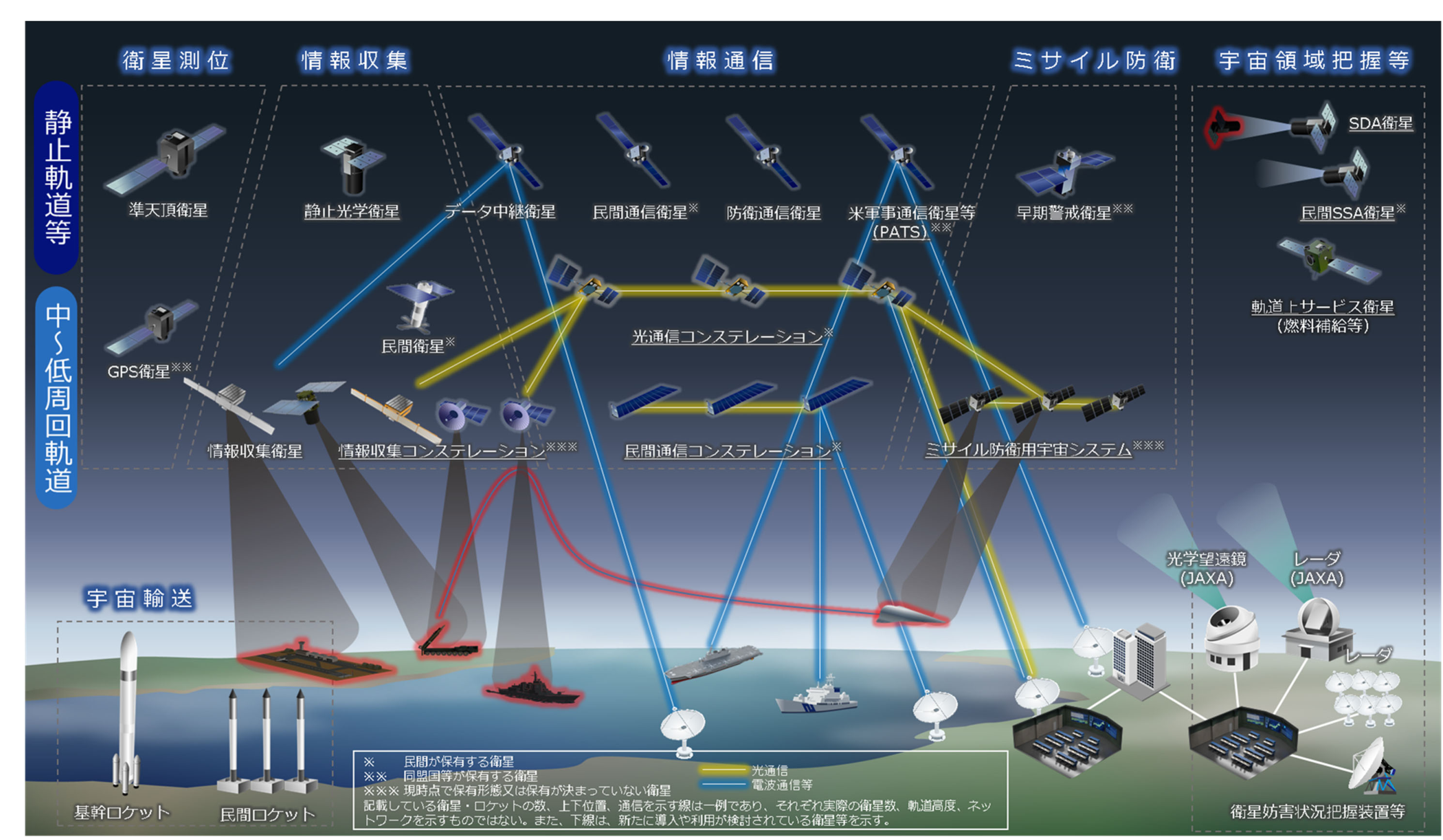 - 通信(防衛通信衛星、民間通信衛星コンステレーションの活用、PATS(Protected Anti-Jam Tactical SATCOM)参加に向けた通信実証)