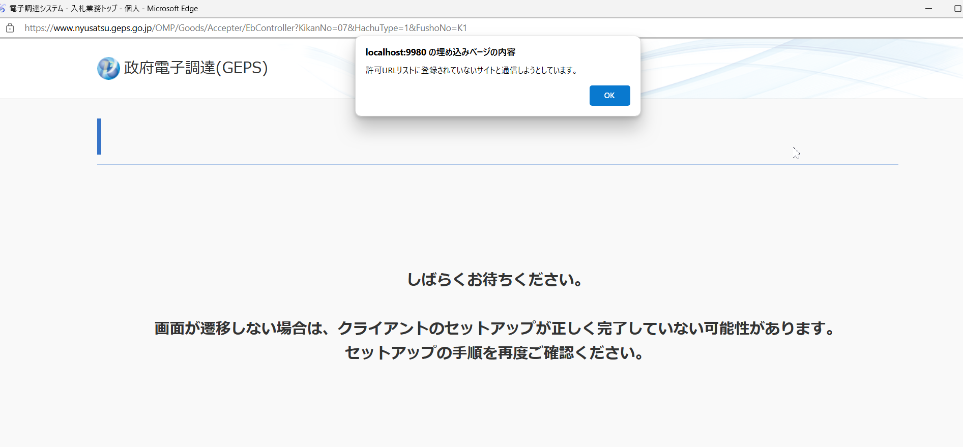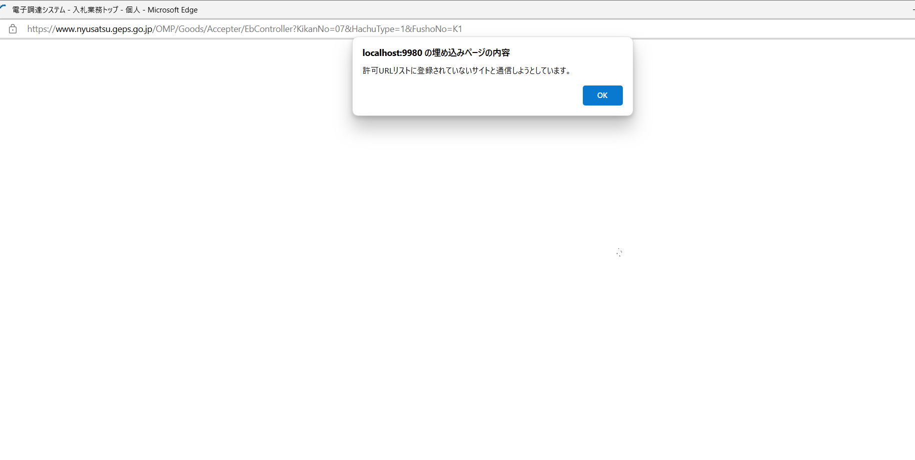 という回答がなされています。上で示したように電子調達用プログラムの許可URLリスト登録にきちんとこのURLは載っているので、