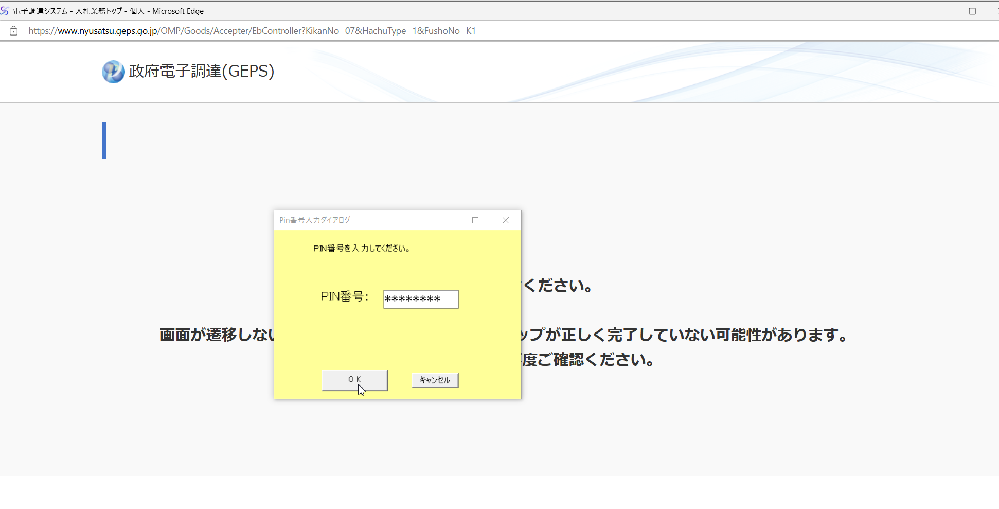 すると昨年からのトラブルが嘘のように解消。ということで、PIN番号というか、電子証明書のパスワードを入力。