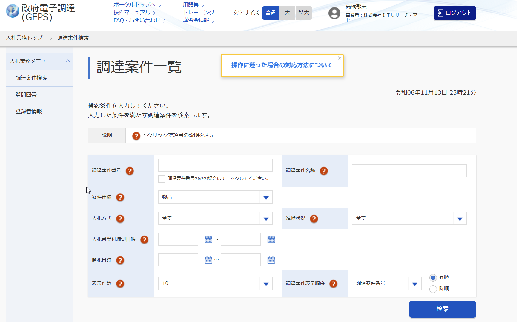 入札ができない状態なので、ぜひともエラーについて修補していただきたいと思います。システムメインテナンスで対応いただけるのを待っています。