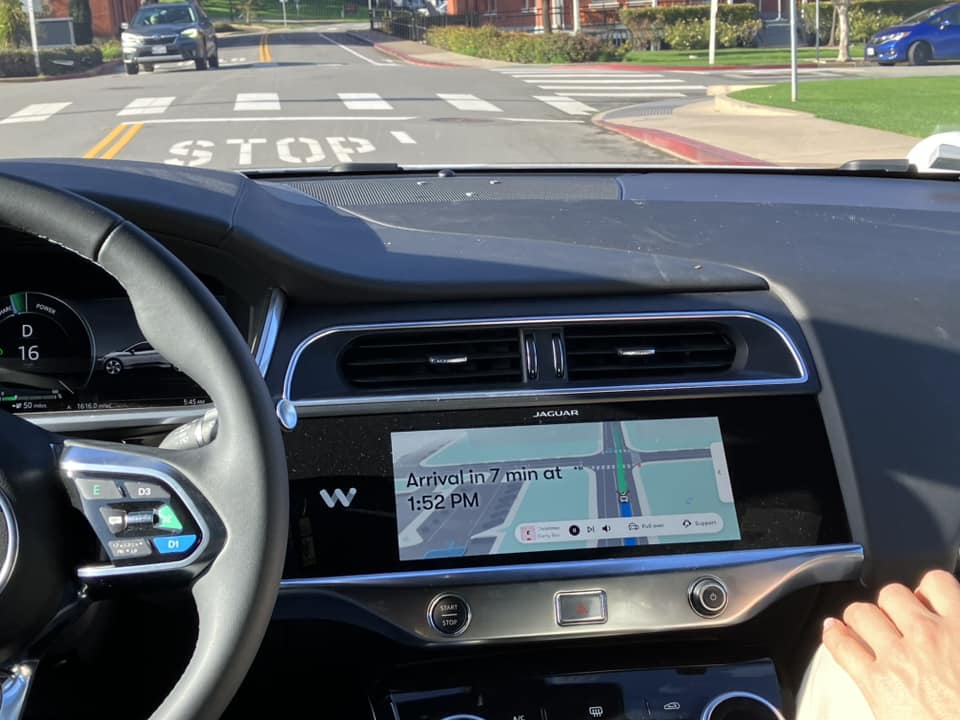 でもって、Waymoがくる(車上のセンサーのところに、上のところにイニシャルがでます)と、ドアをあけて乗ると、welcomeの音声が流れて自然に利用できます。
