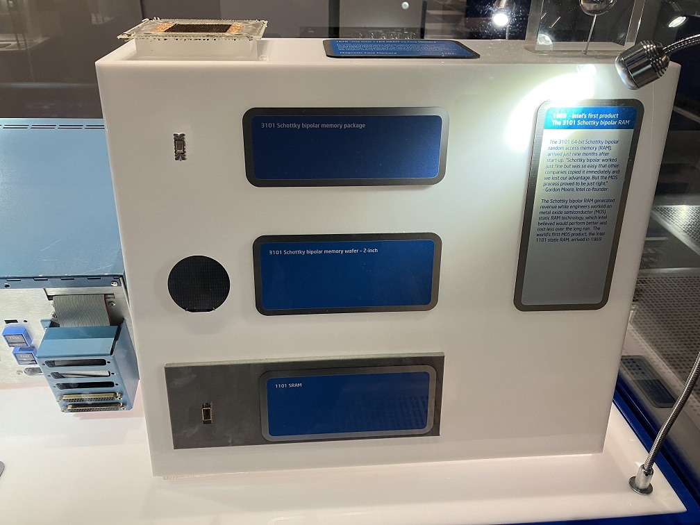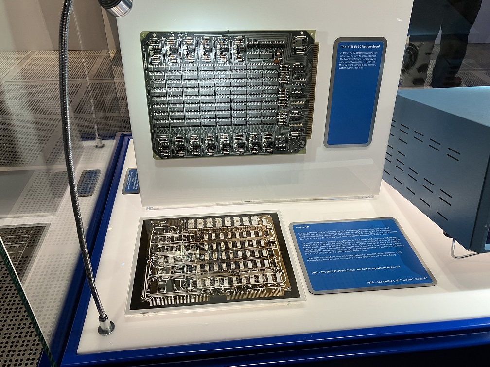 インテルの創業当時の写真家ら、重要なマシーンとかの展示、さらには、旧ロゴとの時代の話とかも展示されています。