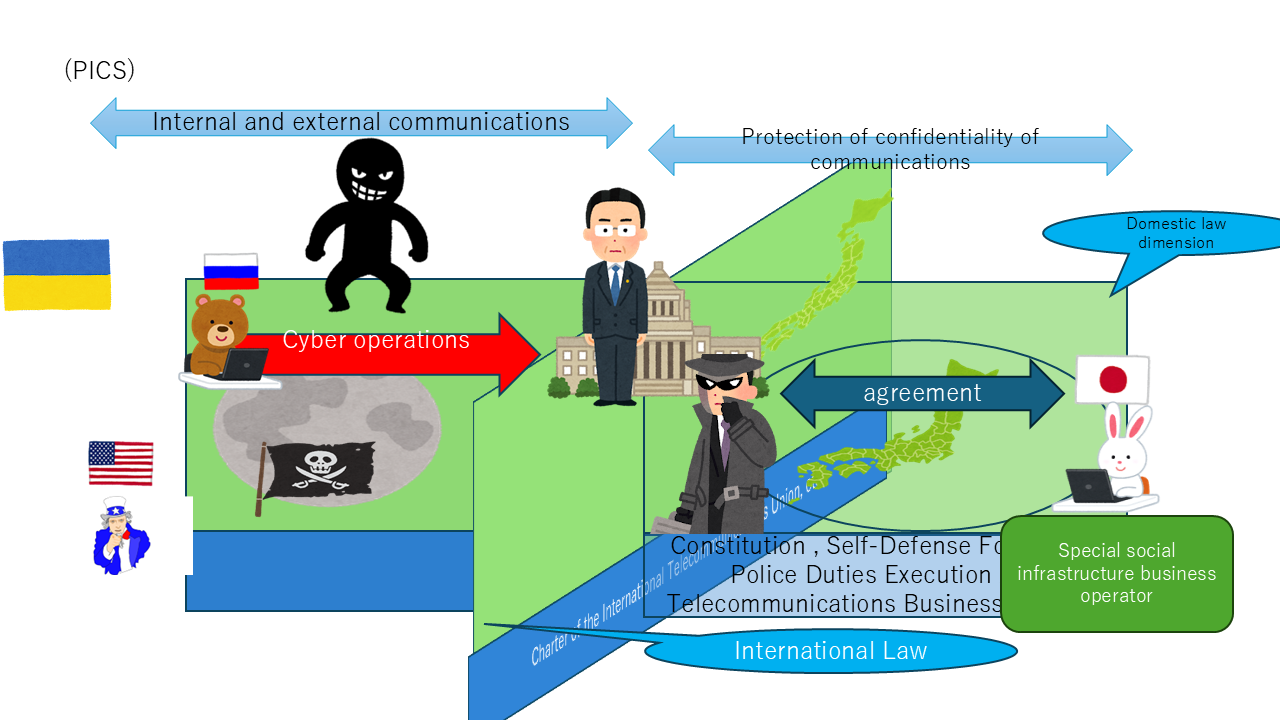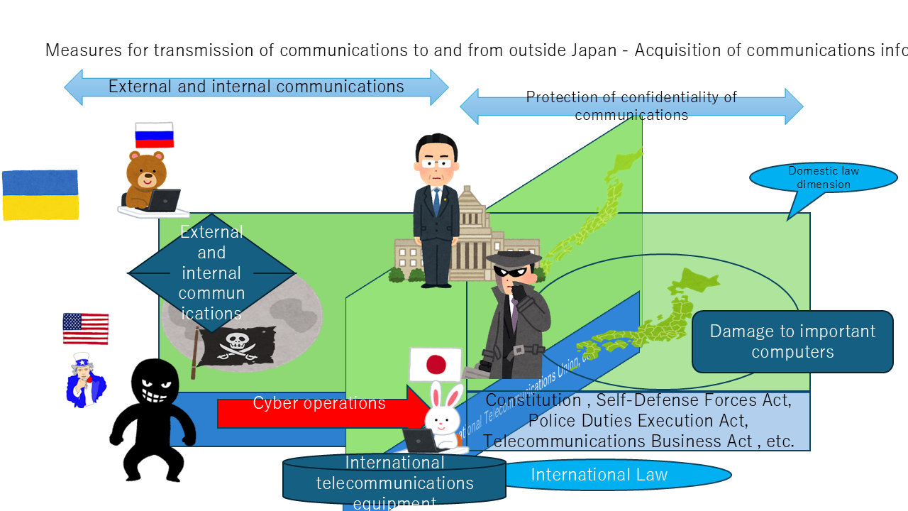 The protection of confidentiality in domestic communications is understood to be safeguarded by provisions such as Article 4 of the Telecommunications Business Act. However, the relationship with the Telecommunications Business Act is not discussed here. The Prime Minister’s authority to issue orders should, in itself, be subject to discussion regarding its relationship with the Telecommunications Business Act. I assume that it is structured as a special law that takes precedence over general laws, but I am personally curious why this is not explained.