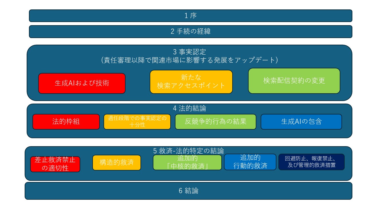 ここでは、(1) 独占禁止法の一般的な法的原則に基づく救済措置;(2) 提案された救済措置を支持する責任段階における事実認定の十分性;(3) グーグルの排除的行為の「成果」;(4) 汎用AI企業および製品を救済措置の範囲に含めることの妥当性についての検討がなされています。