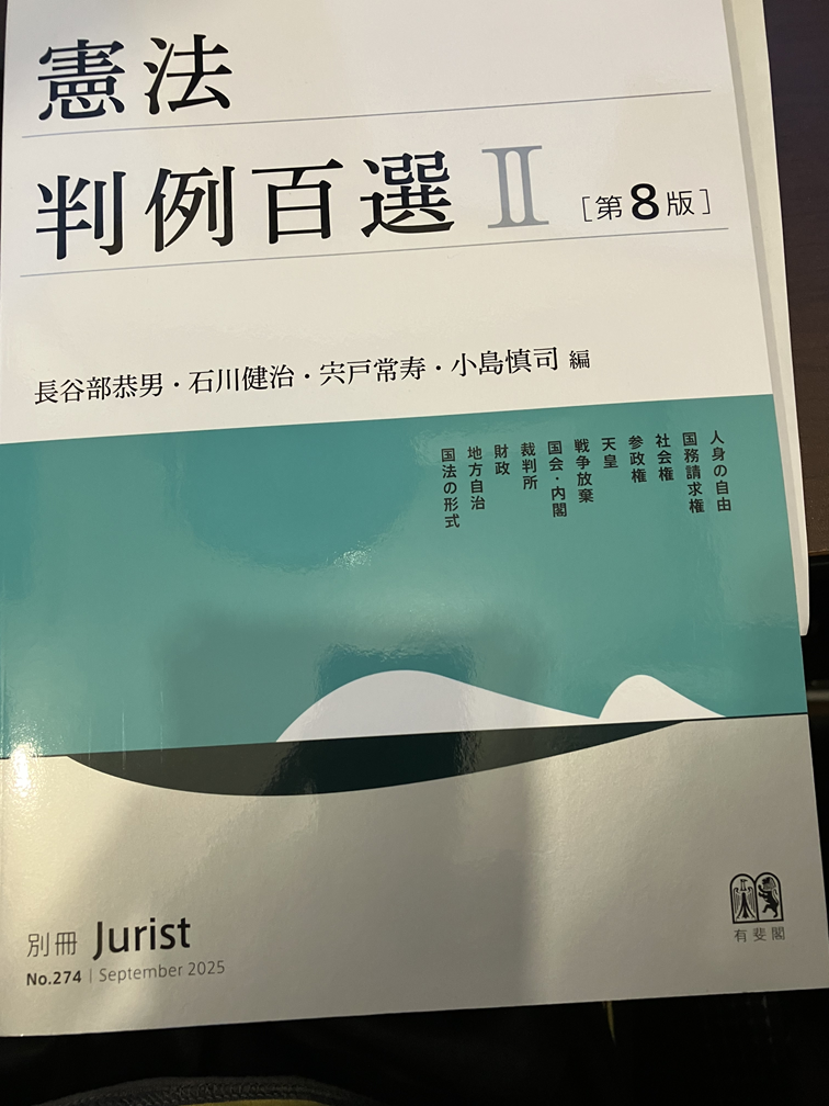 が掲載されています。なかなか憲法判例を勉強する時間はとれませんが、機会を見まして勉強するつもりです。