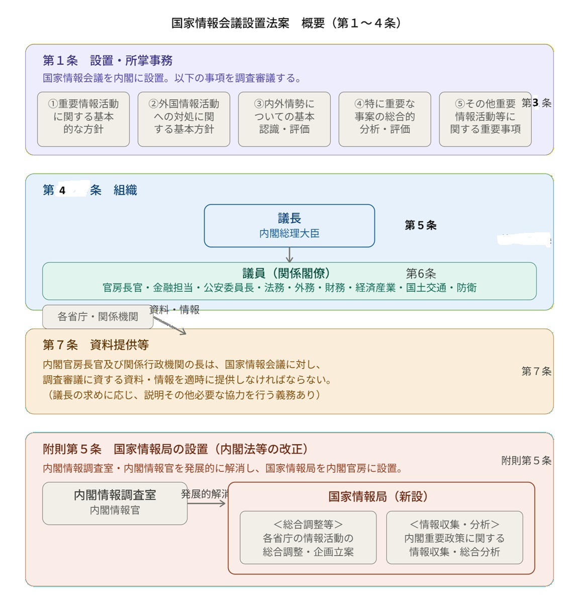 概要としては、【概要】国家情報会議設置法案が準備されています(リンク)。