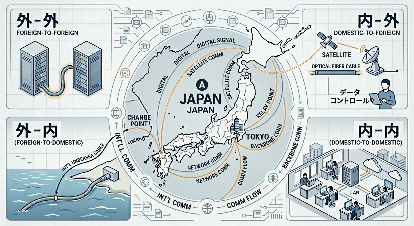 いま一つは、サイバー対処能力強化法でしめされた外-外、内-外、外-内、内-内の通信の種別のもつ意味になるかと思います。